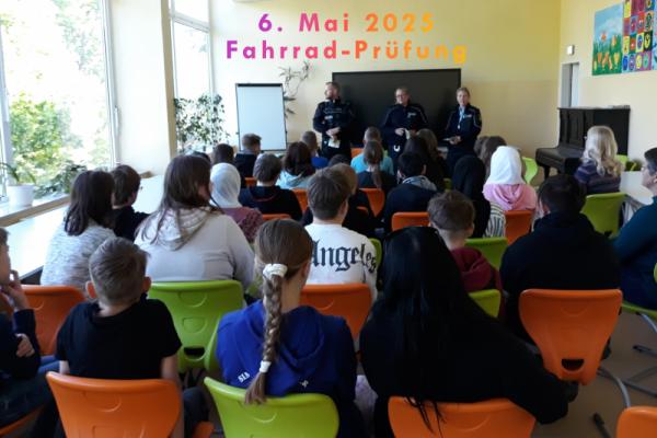 Am Dienstag, 06. Mai 2025 war es wieder soweit und die Polizei kam zu uns, um die Verkehrssicherheit mit dem Fahrrad bei uns zu überprüfen. Regelmäßig wurde Theorie und Praxis in der Klasse 5a und 5b mit insgesamt 32 Schüler und Schülerinnen geübt. Eine große Erleichterung dabei ist, dass wir einen gepflegten Fahrradkeller mit 18 Fahrrädern haben und dieser wöchentlich auch technisch in einer Wahlpflichtfachgruppe fachlich überprüft wird. Neue Fahrradhelme von der Firma Zweirad Schulze sind auch seit diesem Jahr mit an den Start und ergänzen unseren Bestand. So ist zu jeder Zeit die Verkehrssicherheit unserer Schüle und Schülerinnen beim Praxisunterricht gegeben.