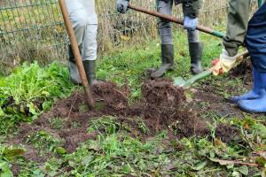 in der 4. Unterrichtsstunde einen Baum im Schulgarten pflanzen.